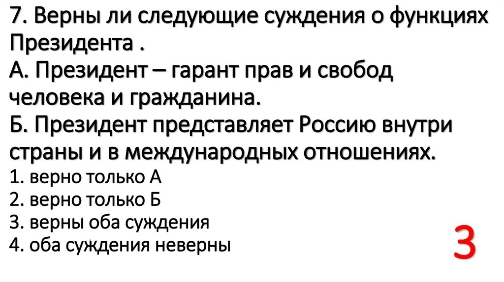 7. Верны ли следующие суждения о функцияхПрезидента .