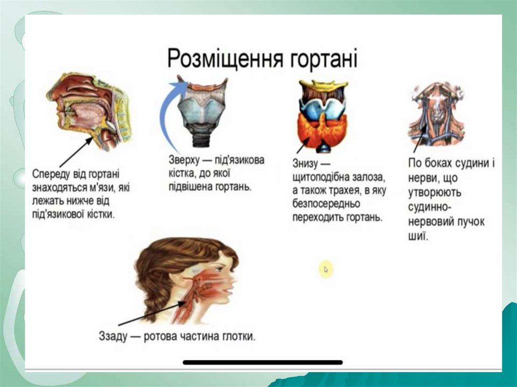 гортані, щитовидній залозі.