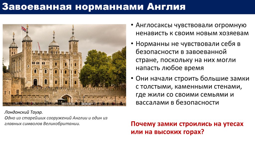Завоеванная норманнами Англия• Англосаксы чувствовали огромную