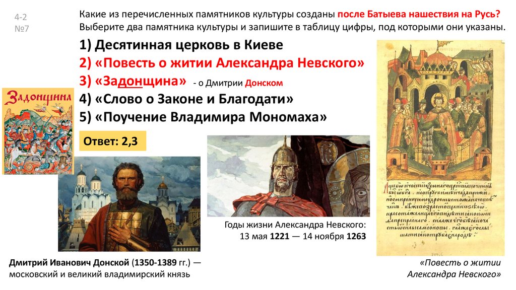 • Укажите две исторические личности, которые были непосредственно связаны с борьбой Руси