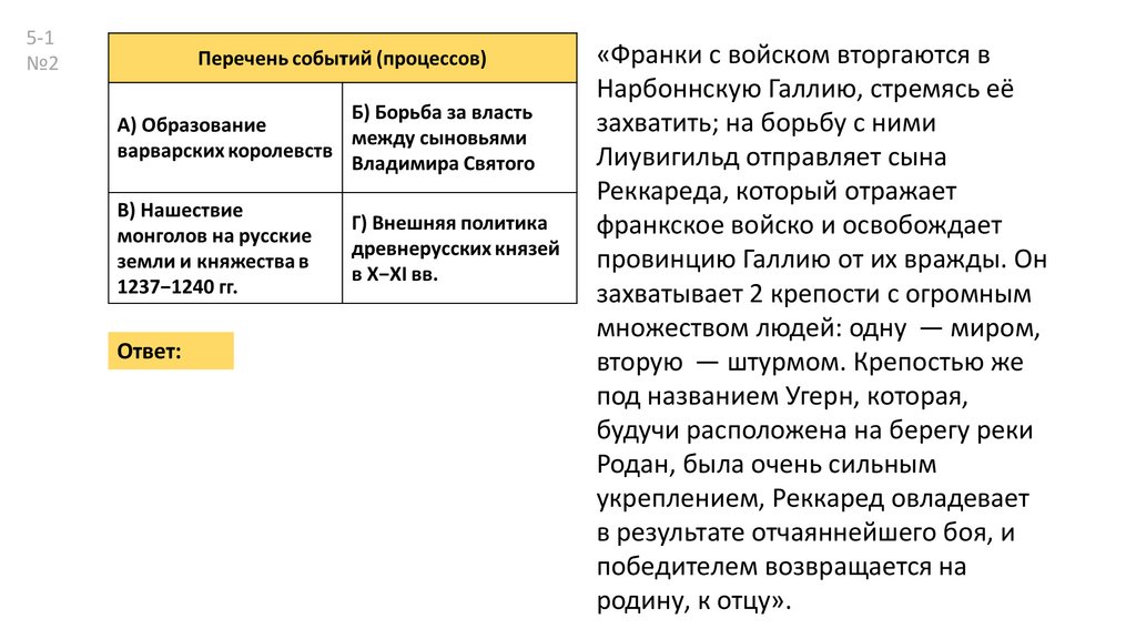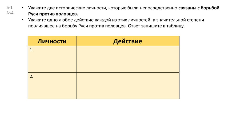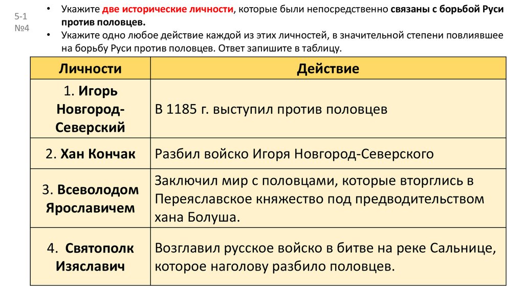 на борьбу Руси против половцев. Ответ запишите в таблицу.