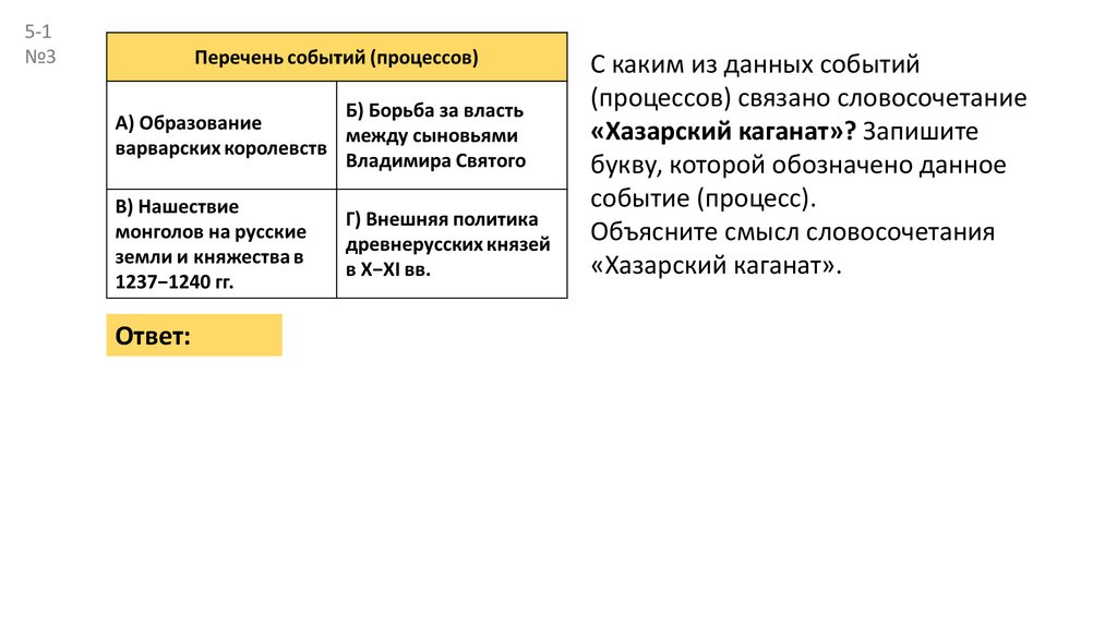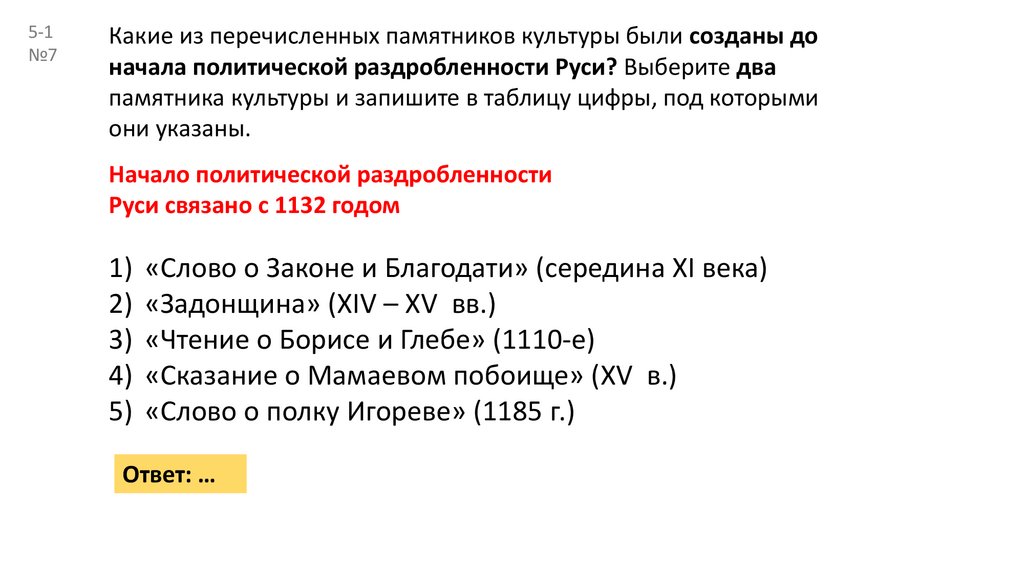 повлиявшее на борьбу Руси против половцев. Ответ запишите в таблицу.
