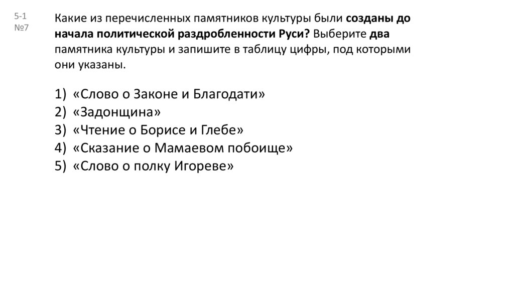 Выберите два памятника культуры и запишите в таблицу цифры, под которыми они указаны.