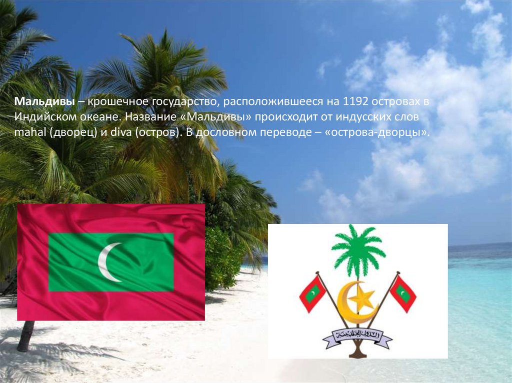 Мальдивы – крошечное государство, расположившееся на 1192 островах вИндийском океане. Название «Мальдивы» происходит от индусских слов