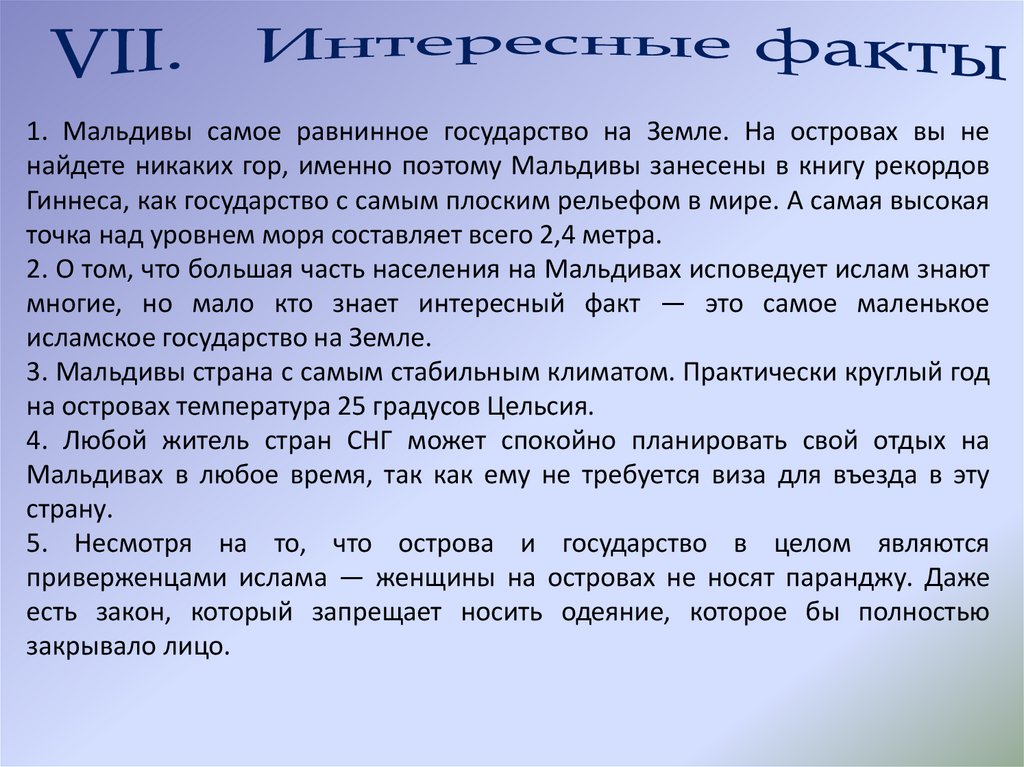 1. Мальдивы самое равнинное государство на Земле. На островах вы ненайдете никаких гор, именно поэтому Мальдивы занесены в книгу рекордов