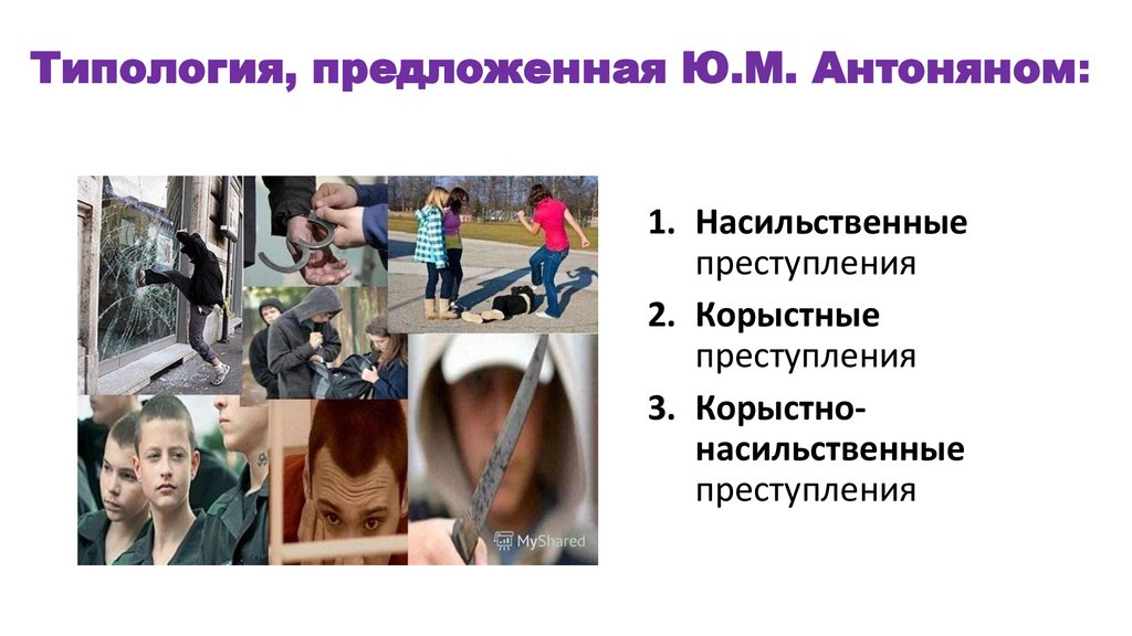 Типология, предложенная Ю.М. Антоняном:1. Насильственные