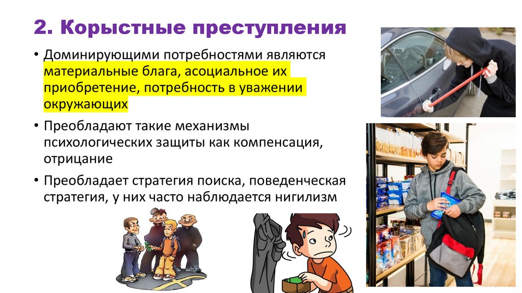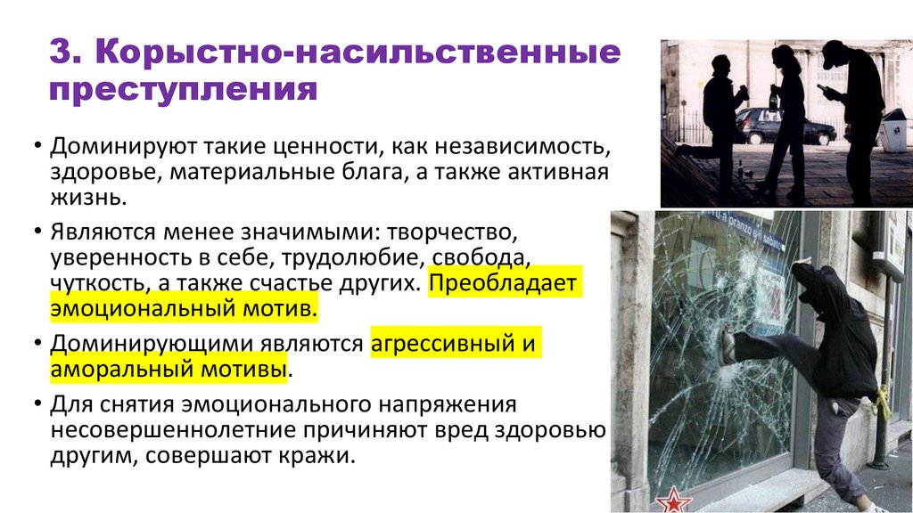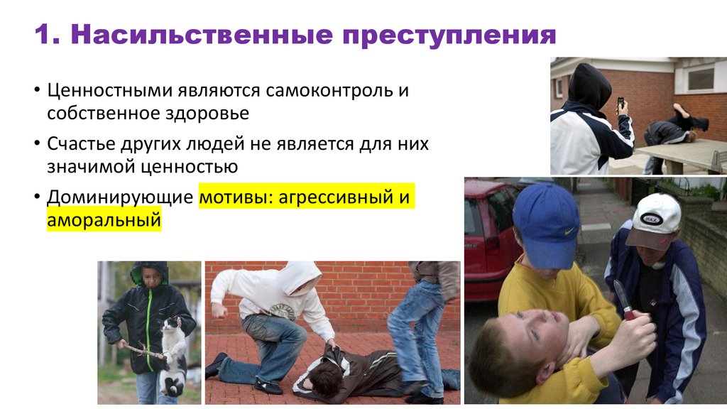 1. Насильственные преступления• Ценностными являются самоконтроль и