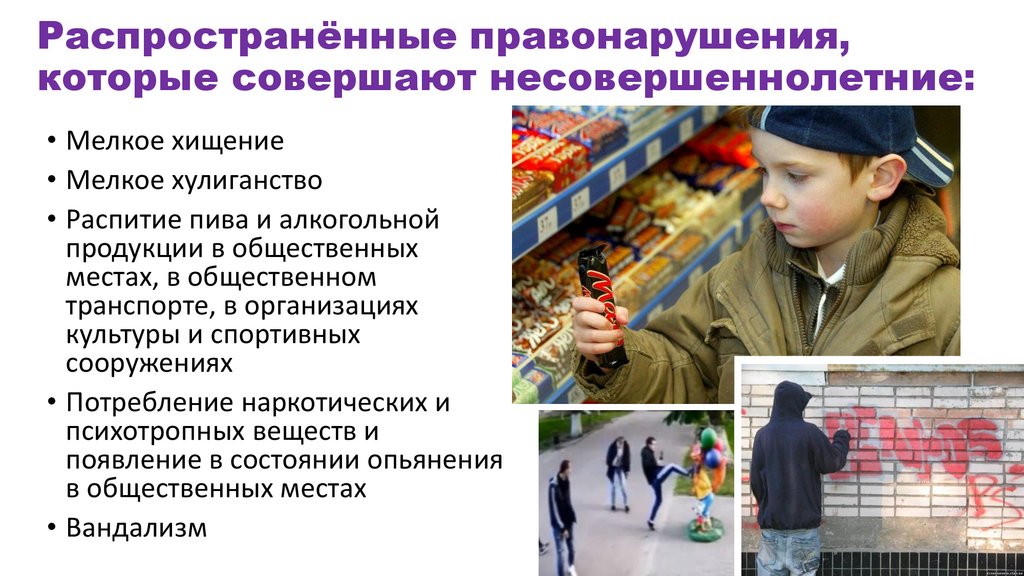 Распространённые правонарушения,которые совершают несовершеннолетние: