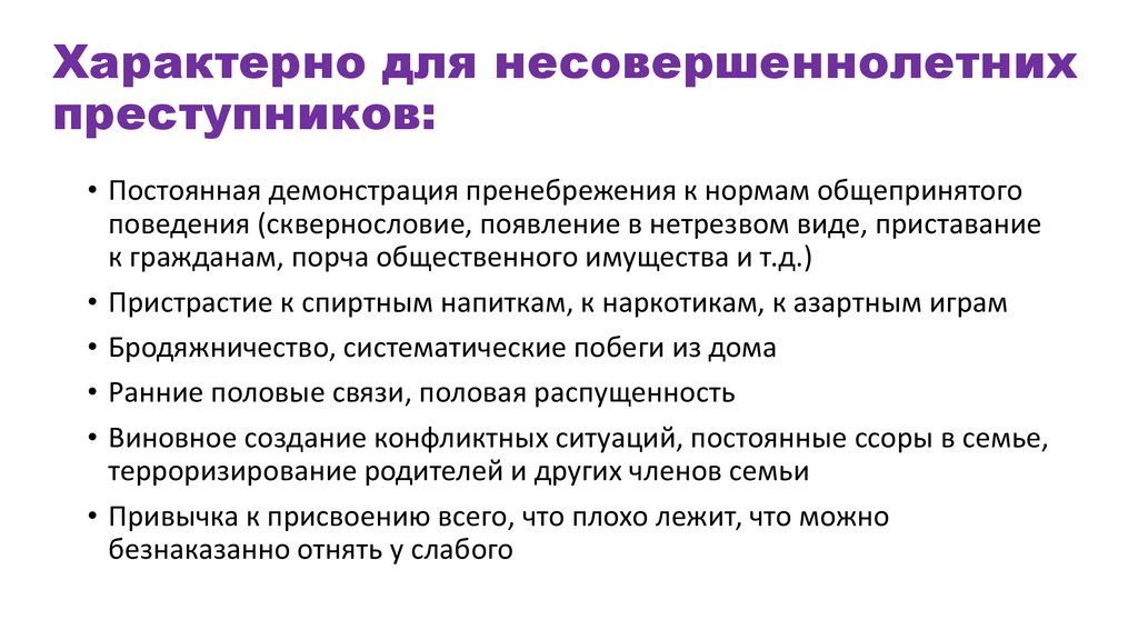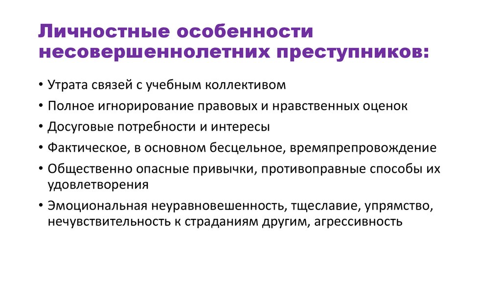 Типологии несовершеннолетних правонарушителей. Характеристика направлений работы с несовершеннолетними правонарушителями