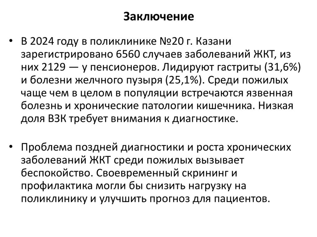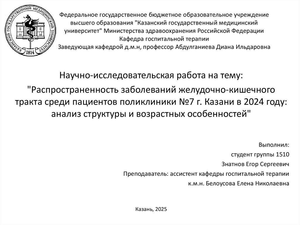 Распространенность заболеваний желудочно-кишечного тракта среди пациентов поликлиники №7 г. Казани в 2024 году