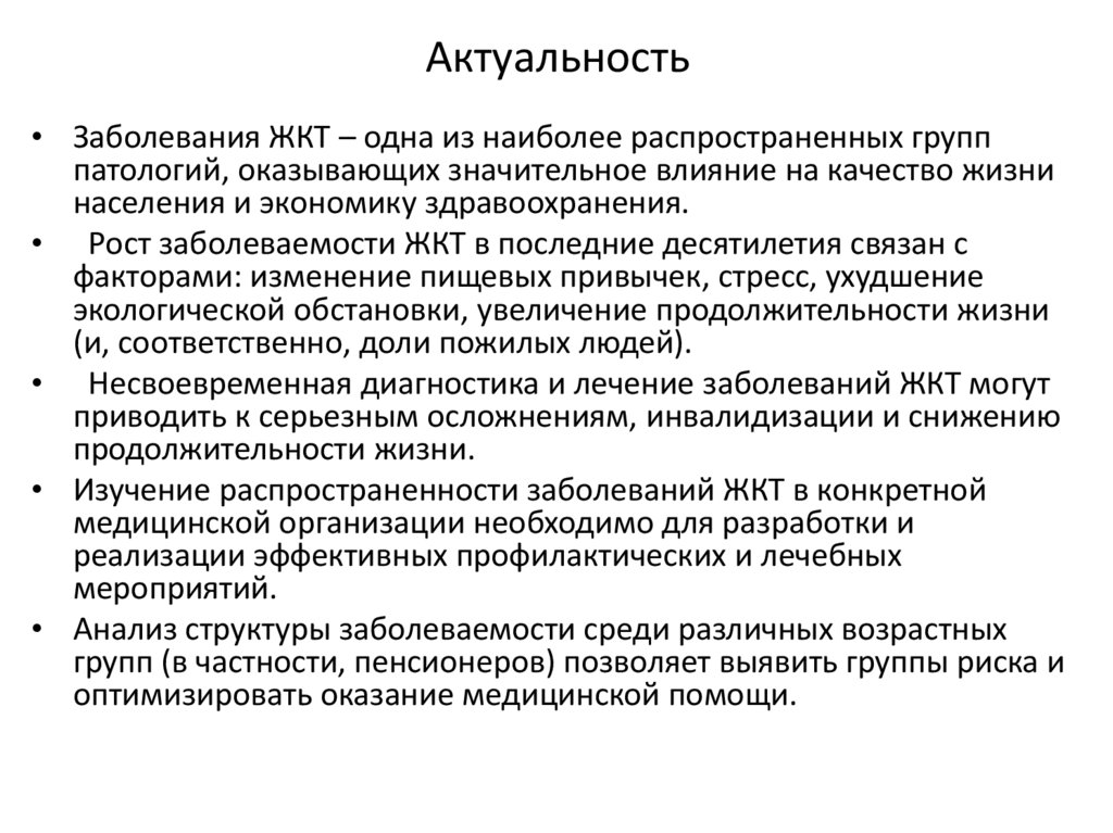 Актуальность• Заболевания ЖКТ – одна из наиболее распространенных групп