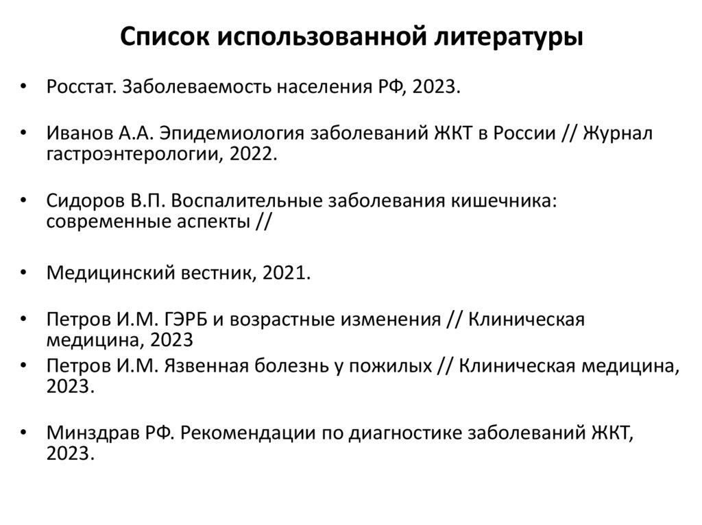 Список использованной литературы• Росстат. Заболеваемость населения РФ, 2023.