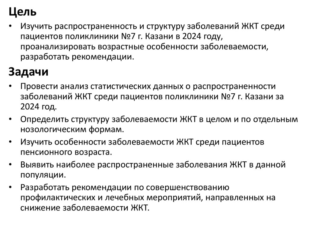 • Изучить особенности заболеваемости ЖКТ среди пациентов