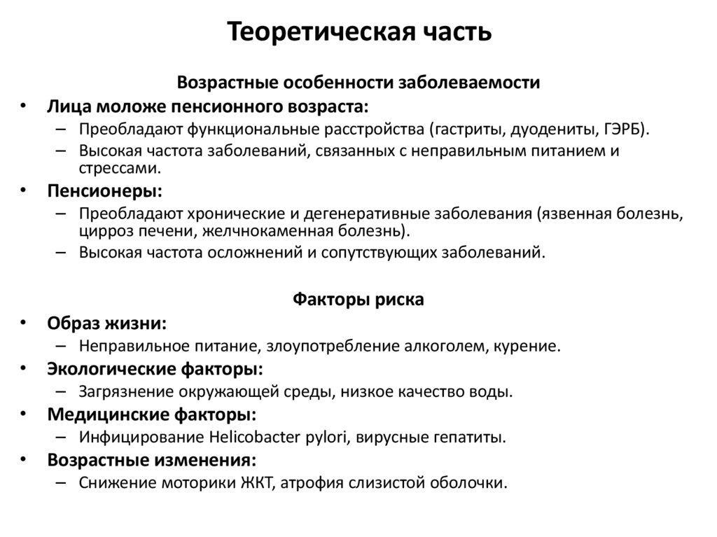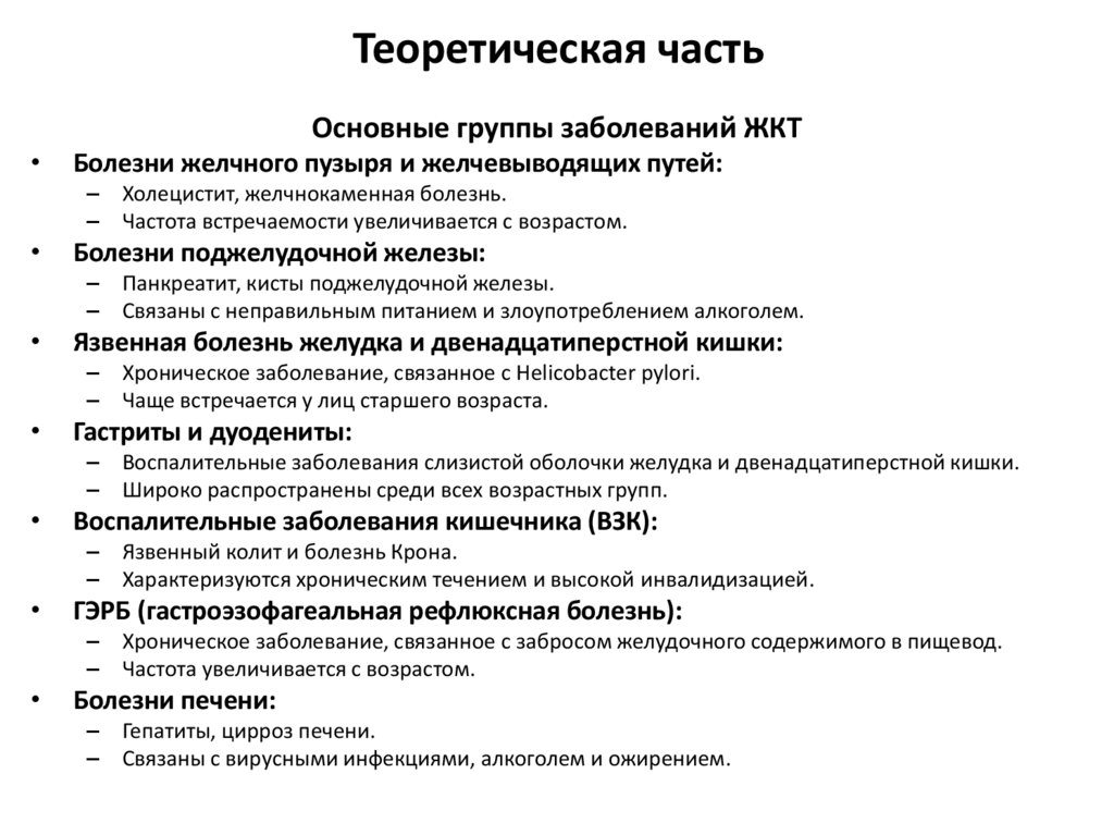Теоретическая частьОсновные группы заболеваний ЖКТ