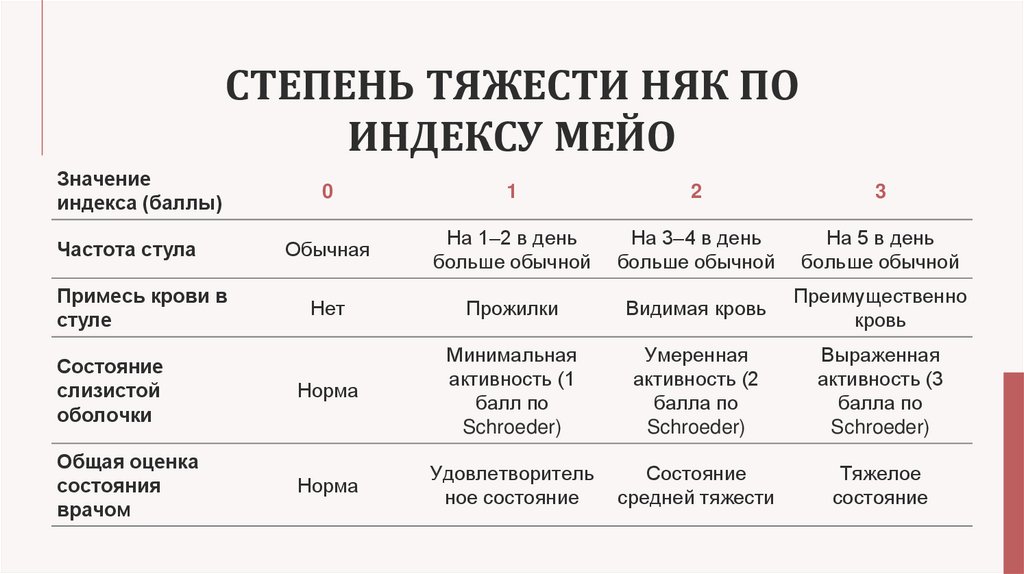 СТЕПЕНЬ ТЯЖЕСТИ НЯК ПОИНДЕКСУ МЕЙО