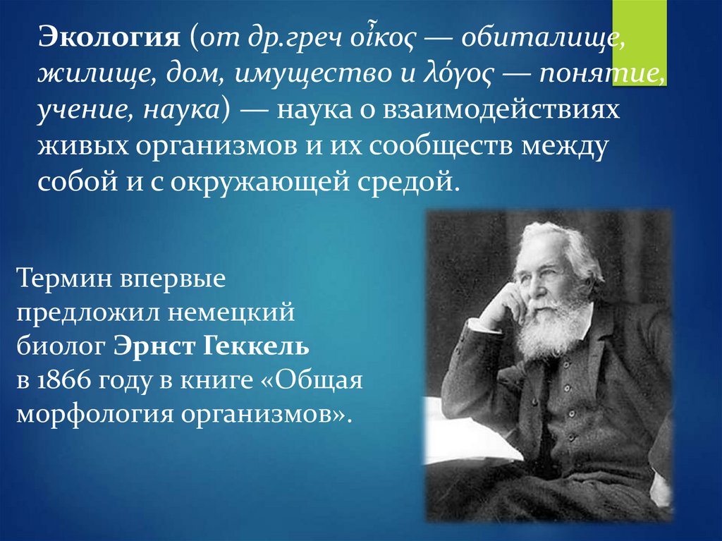 Экология (от др.греч οἶκος — обиталище,жилище, дом, имущество и λόγος — понятие,