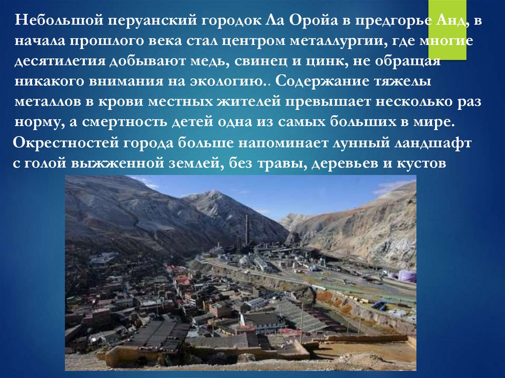 Небольшой перуанский городок Ла Оройа в предгорье Анд, вначала прошлого века стал центром металлургии, где многие