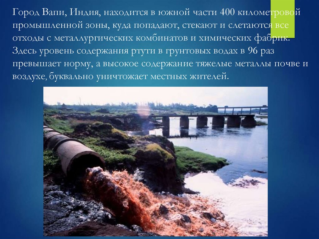 Город Вапи, Индия, находится в южной части 400 километровойпромышленной зоны, куда попадают, стекают и слетаются все
