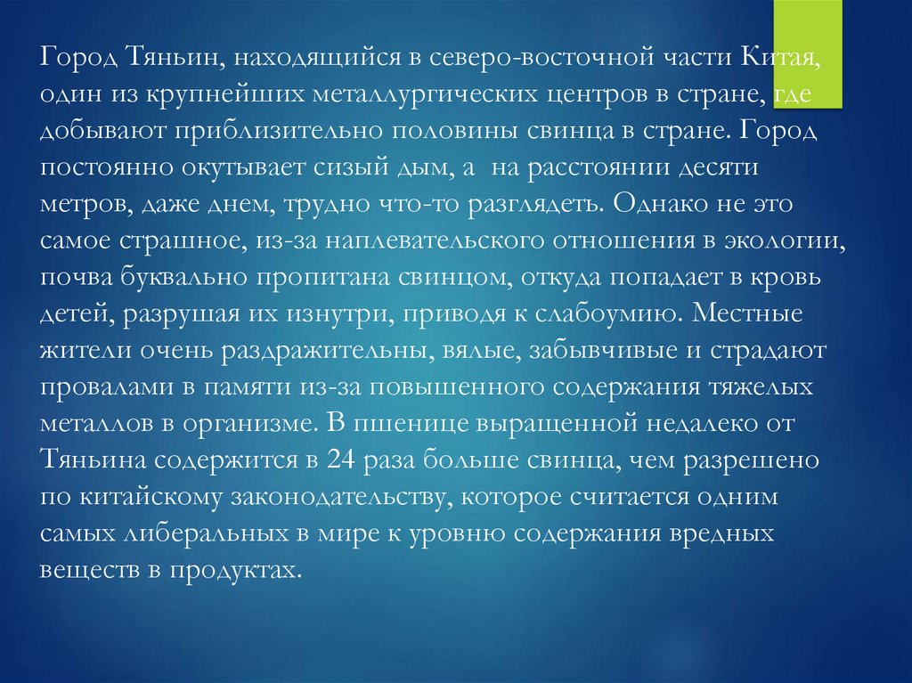 Тяньина содержится в 24 раза больше свинца, чем разрешено