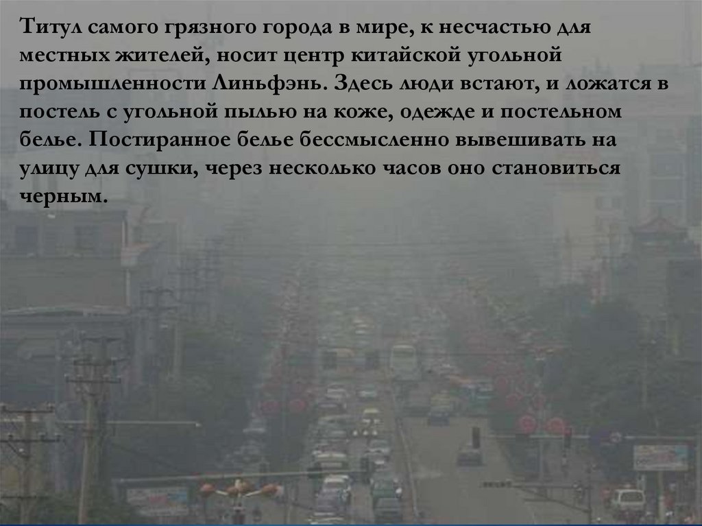 Титул самого грязного города в мире, к несчастью дляместных жителей, носит центр китайской угольной