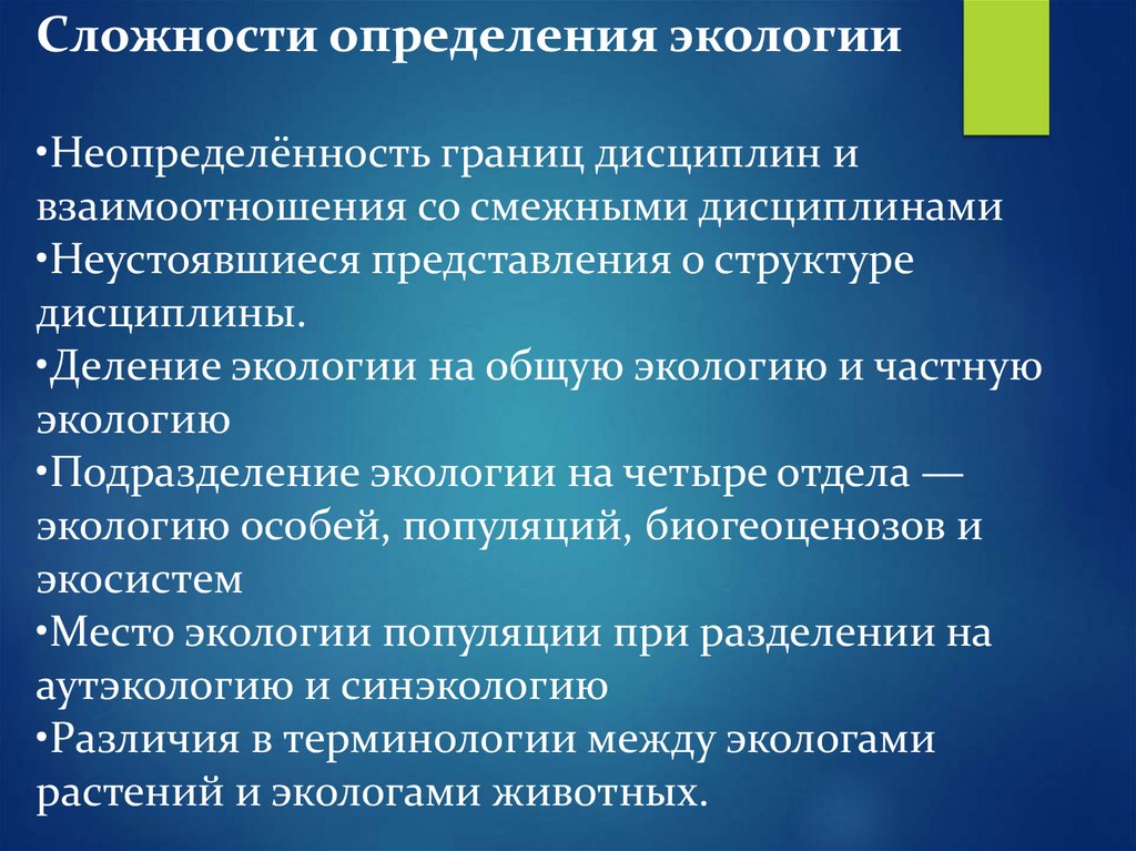 Сложности определения экологии•Неопределённость границ дисциплин и