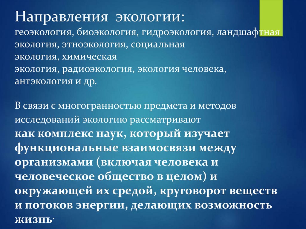 Направления экологии:геоэкология, биоэкология, гидроэкология, ландшафтная