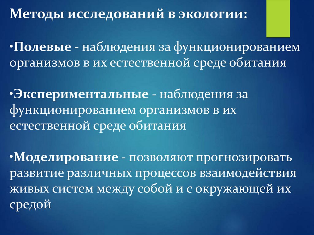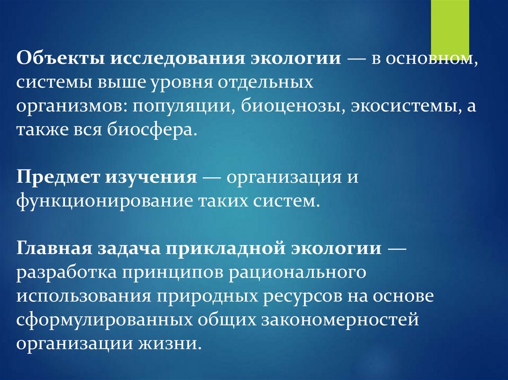 Объекты исследования экологии — в основном,системы выше уровня отдельных