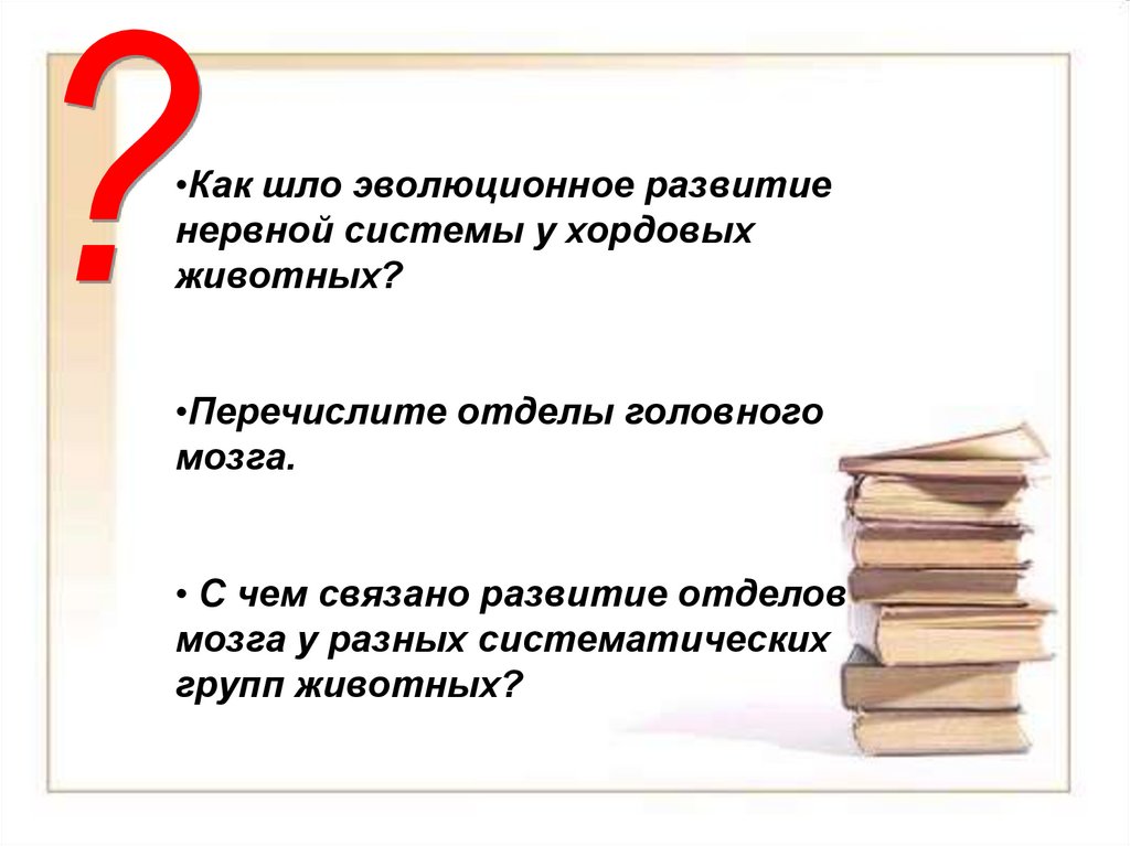 •Как шло эволюционное развитиенервной системы у хордовых