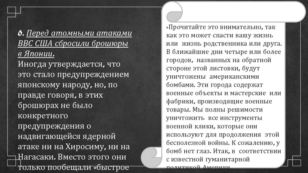 6. Перед атомными атакамиВВС США сбросили брошюры