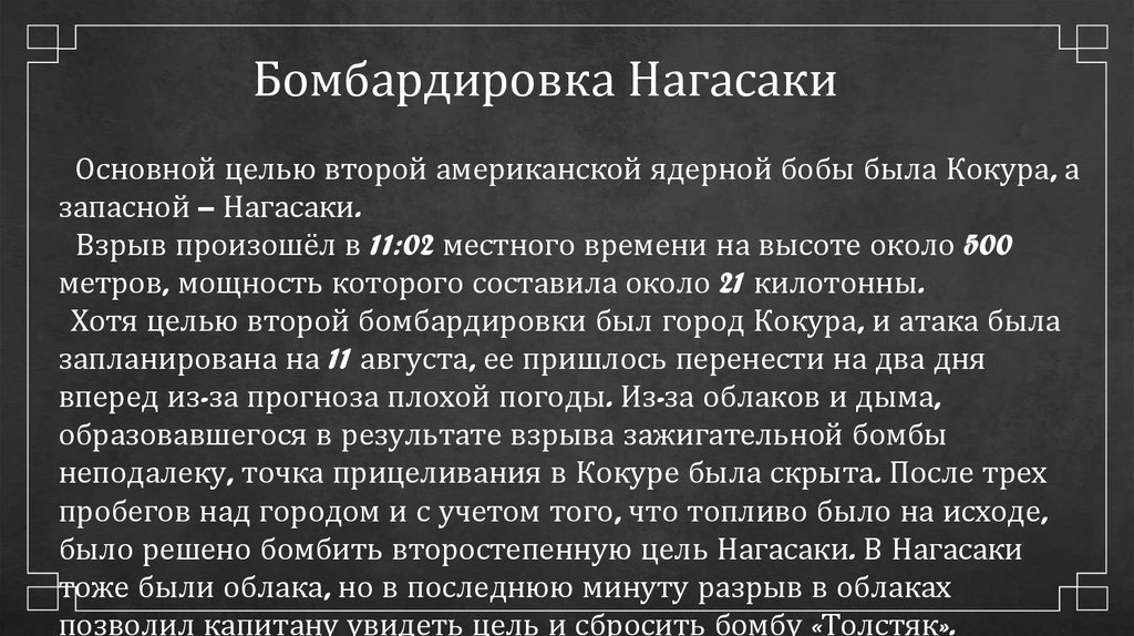 было решено бомбить второстепенную цель Нагасаки. В Нагасаки