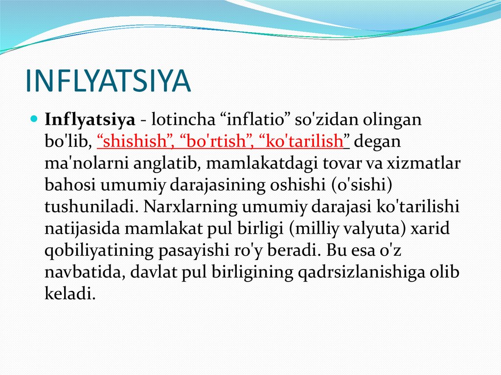 tushuniladi. Narxlarning umumiy darajasi ko'tarilishi