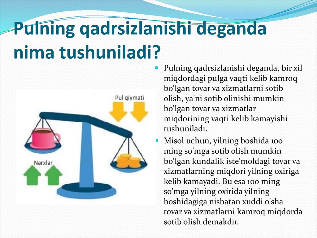 Pulning qadrsizlanishi degandanima tushuniladi?