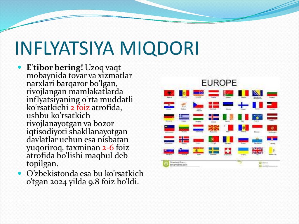 INFLYATSIYA MIQDORIE'tibor bering! Uzoq vaqt