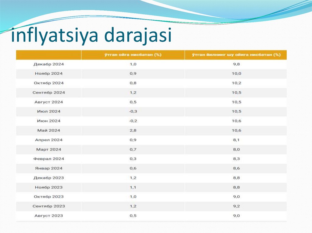 inflyatsiya har yili o‘rtacha 8% ga oshgan