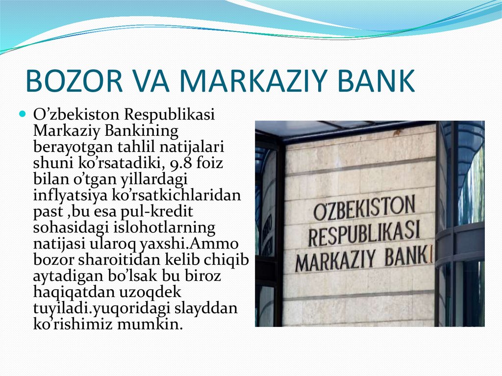 BOZOR VA MARKAZIY BANKO’zbekiston Respublikasi