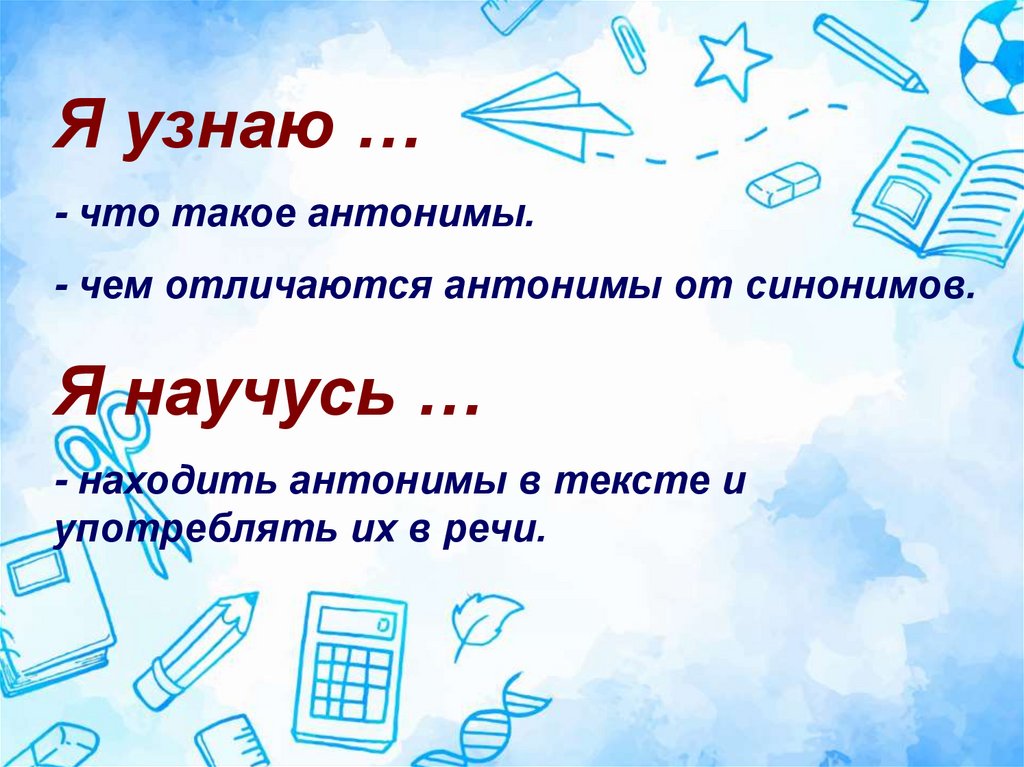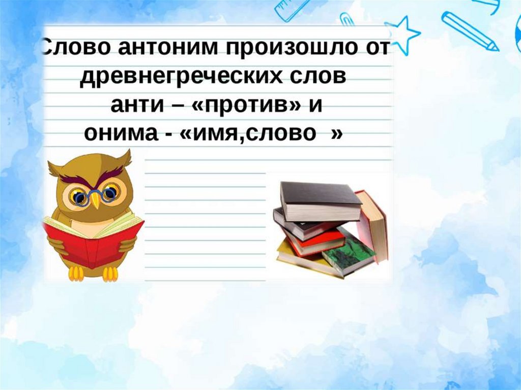 Антонимы –(греч. αντί- «против» + όνομα «имя»)