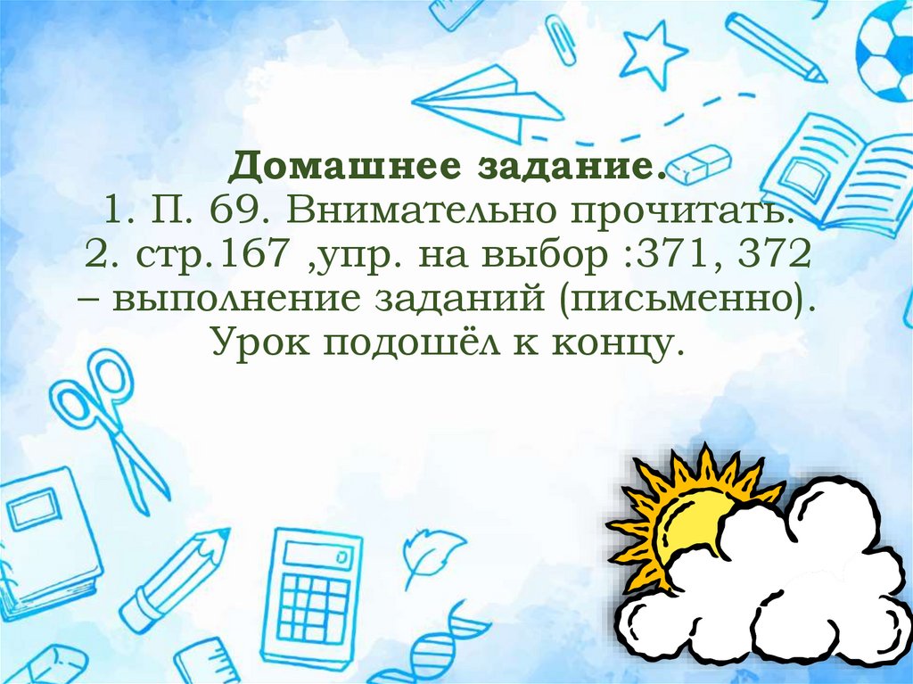 Домашнее задание.1. П. 69. Внимательно прочитать.