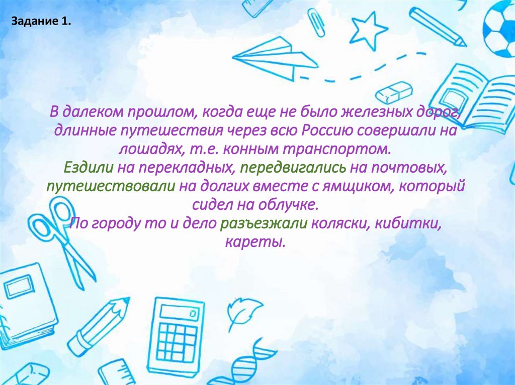Задание 1.В далеком прошлом, когда еще не было железных дорог,