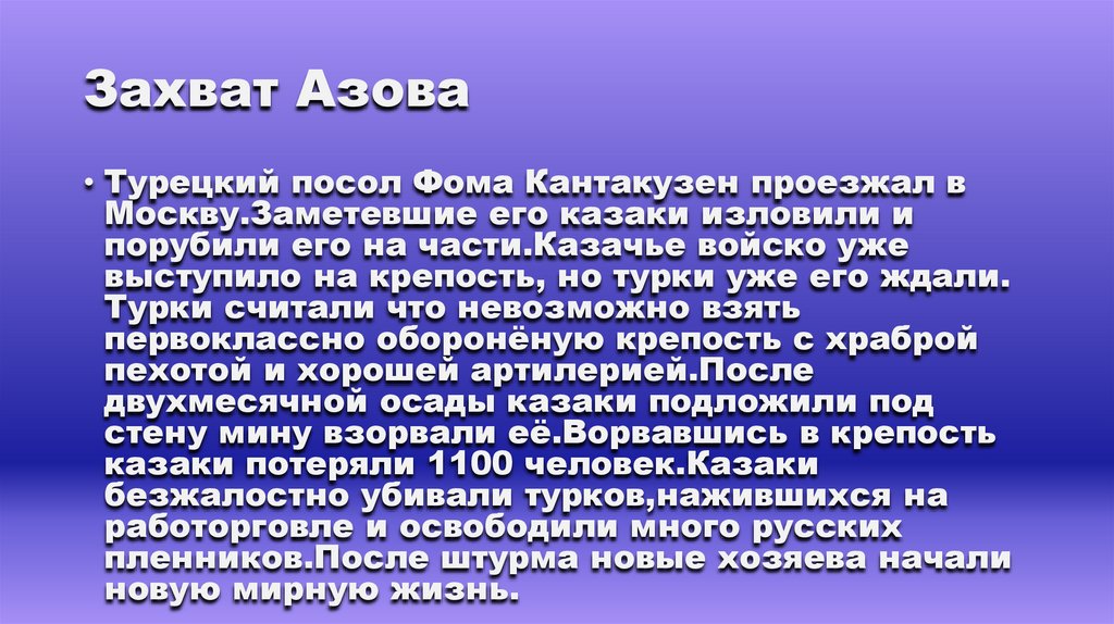 Захват Азова• Турецкий посол Фома Кантакузен проезжал в