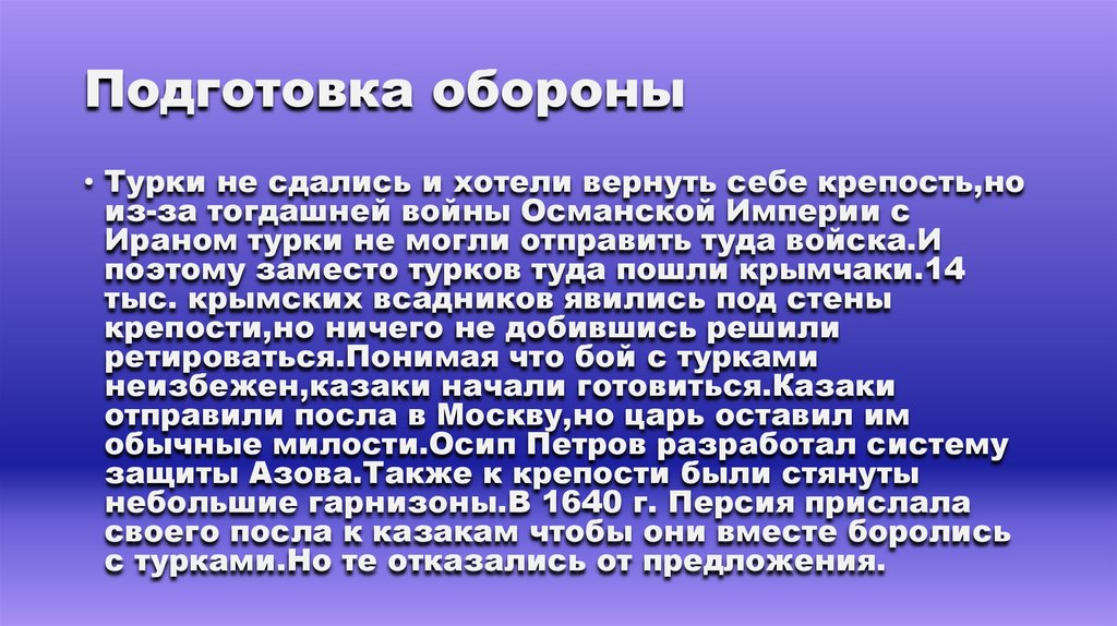 Подготовка обороны• Турки не сдались и хотели вернуть себе крепость,но