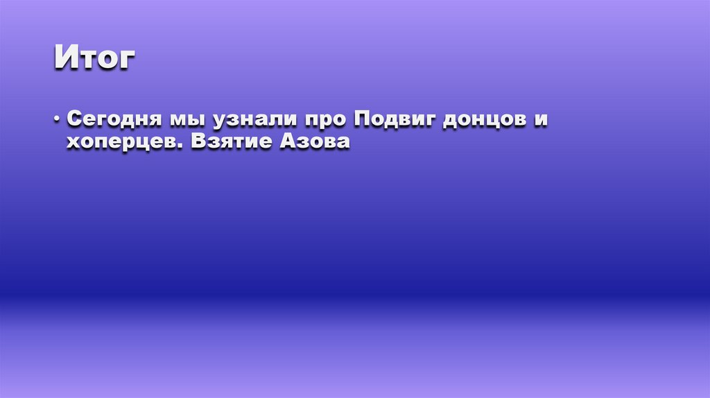 Итог• Сегодня мы узнали про Подвиг донцов и