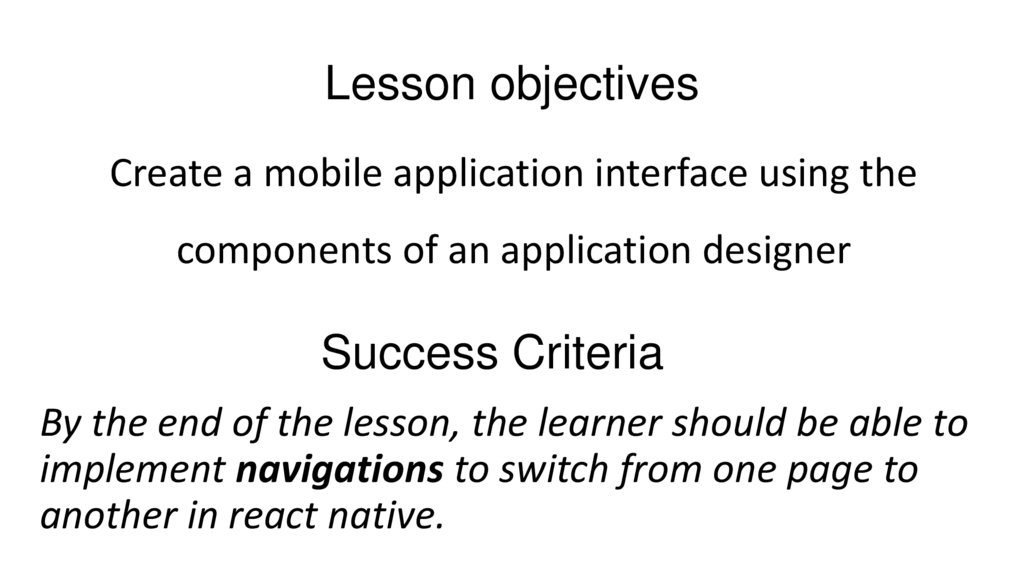 Lesson objectivesCreate a mobile application interface using the
