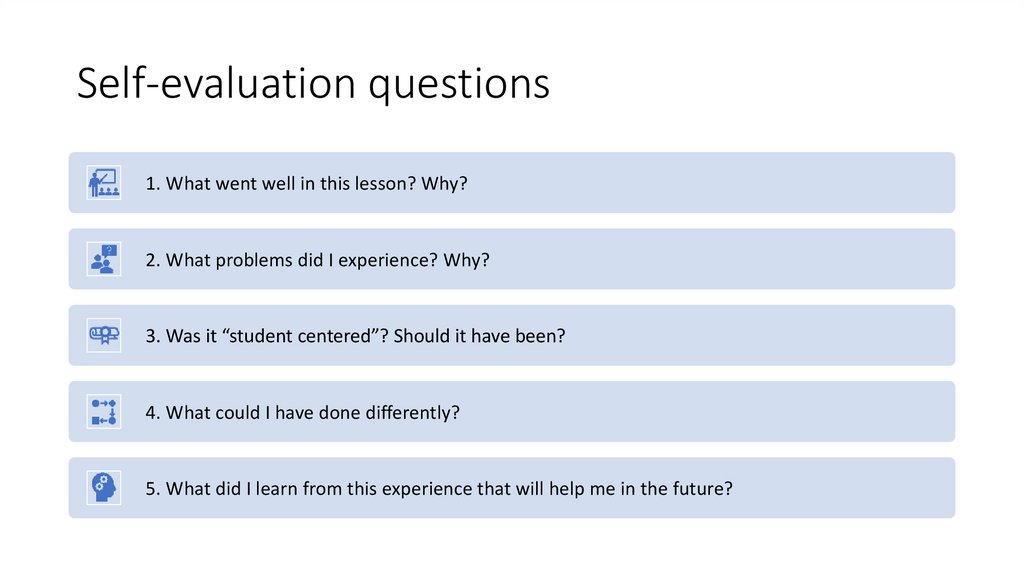 Self-evaluation questions1. What went well in this lesson? Why?