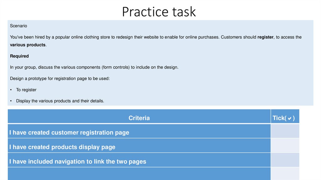 Practice taskScenario