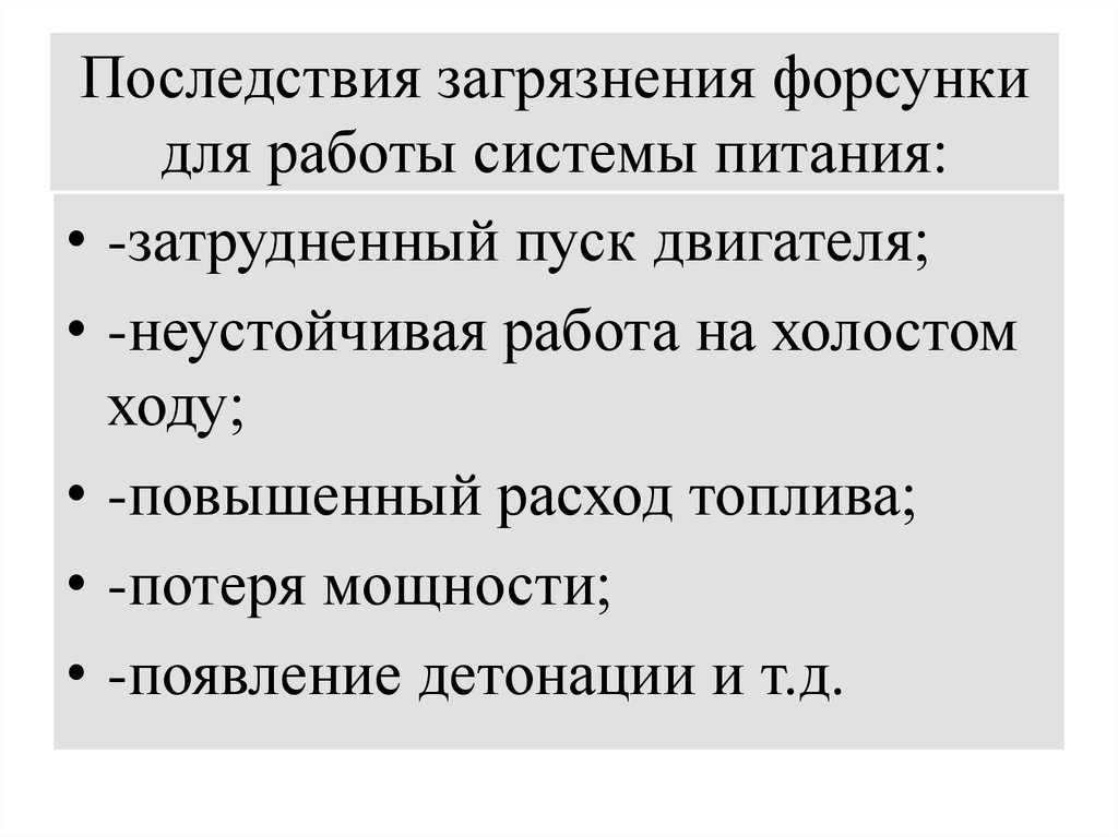• -затрудненный пуск двигателя;• -неустойчивая работа на холостом