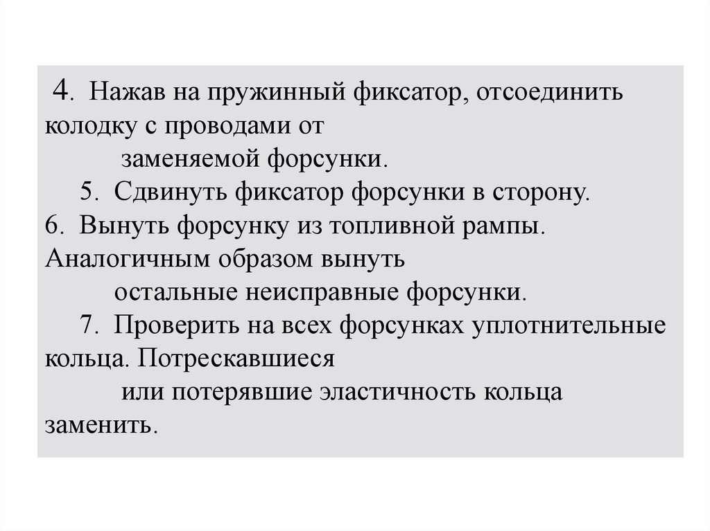 1 .Перед заменой форсунок снизьте давление всистеме питания. Для этого необходимо
