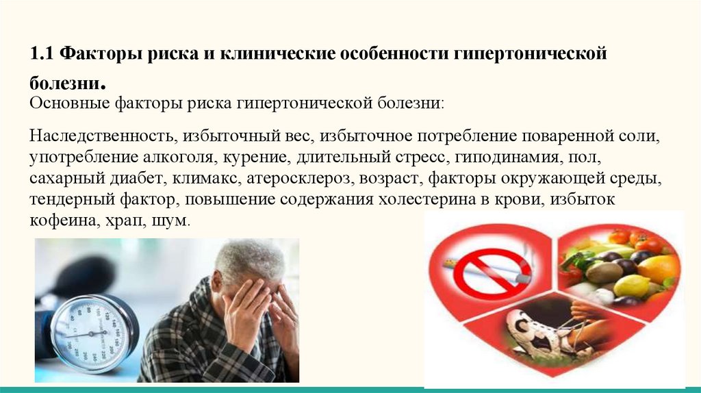 1.1 Факторы риска и клинические особенности гипертоническойболезни.