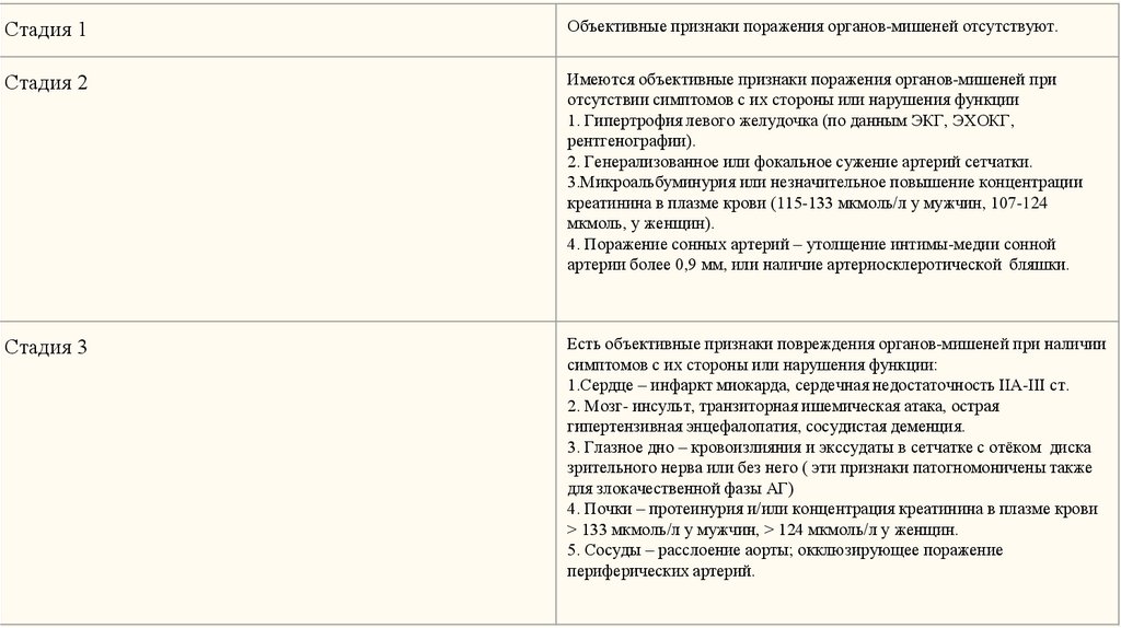 Стадия 1Объективные признаки поражения органов-мишеней отсутствуют.