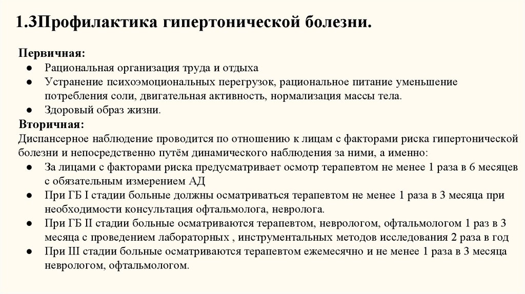 1.3Профилактика гипертонической болезни.Первичная: