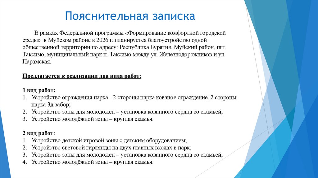 Пояснительная запискаВ рамках Федеральной программы «Формирование комфортной городской